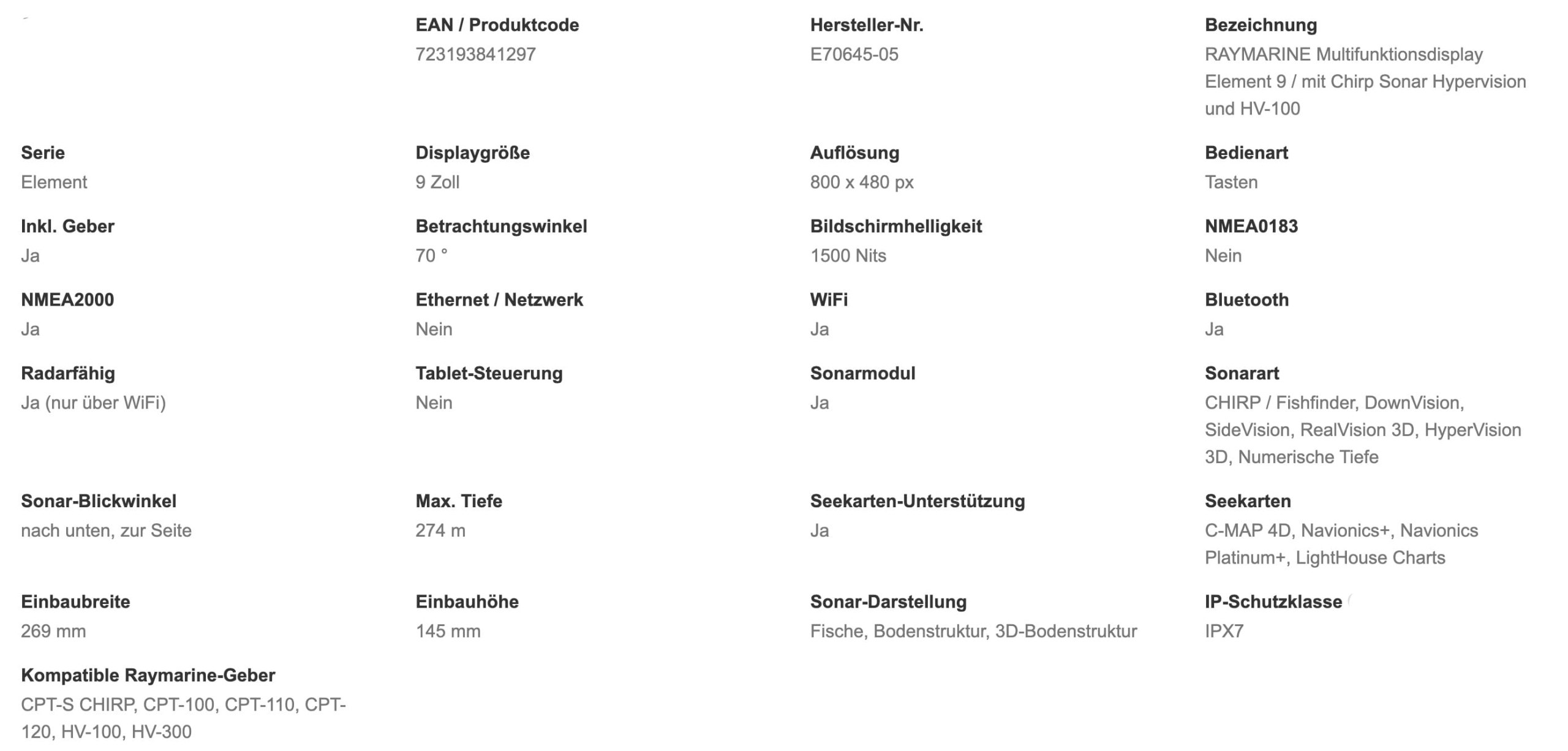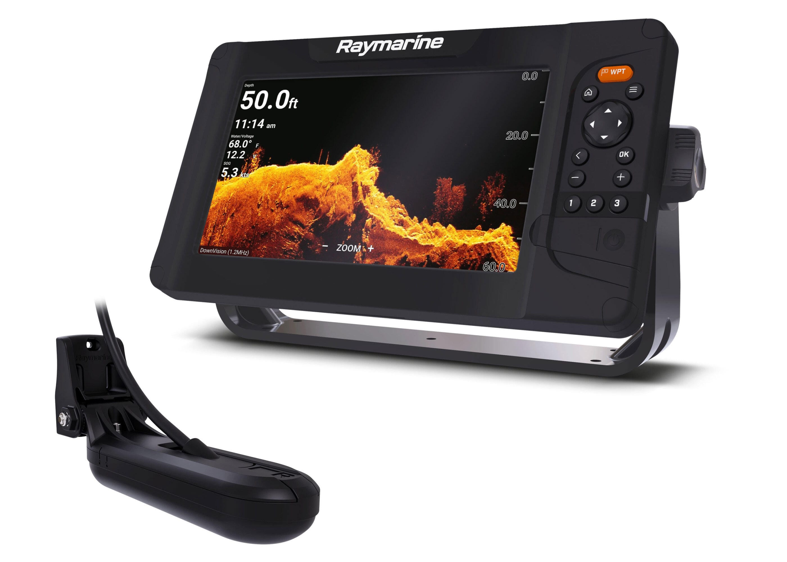 Smart 9″ multifunction display with user-friendly interface and integrated GPS antenna.A touch screen was deliberately omitted from the design, as the classic button controls in connection with the Raymarine Lighthouse Sport operating system make for intuitive and precise control of the device, even at high speeds and strong seas. With built-in HyperVision sonar technology for outstanding image quality of the underwater world. HV-100 transducer included