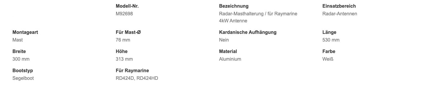 Radar Mast Mount for 4kW / M92698